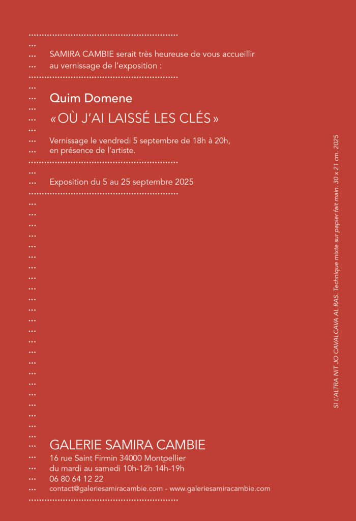OÙ J’AI LAISSÉ LES CLEFS… Galerie SAMIRA CAMBIE. Montpellier (France). Septembre 2025 8 novembre 2025 A Solo Exhibitions ← Entrada anterior